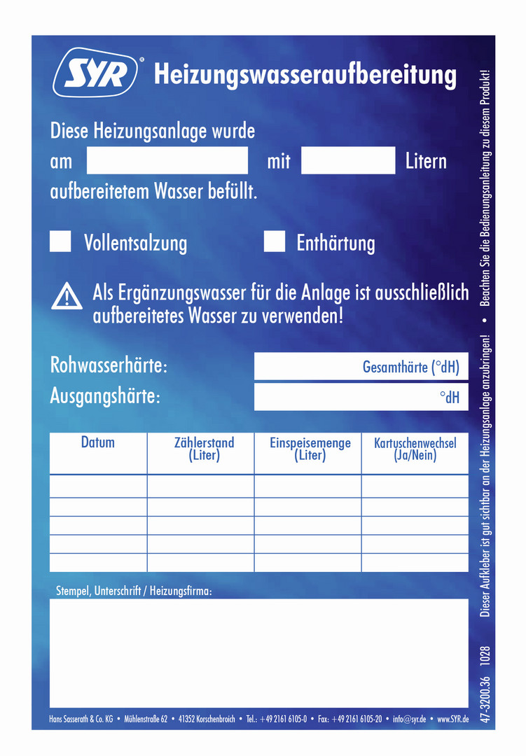 SYR Block-Aufkleber Heizungswasseraufbereitung, 25 Stück