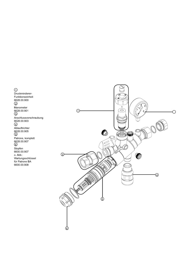 zur automatischen Befüllung von geschlossenen Heizungsanlagen, Gehäuse aus Pressmessing, mit Absperrung, Druckminderer, Manometer, Systemtrenner BA nach DIN EN 1717 bis einschließlich Flüssigkeitskategorie 4, mit beidseitigen Verschraubungen und Wärmedämmschale, max. Betriebsdruck 10 bar, max. Betriebstemperatur 30 °C (Eingang)/65 °C (Ausgang), Medium Trinkwasser, Füllleistung 1,35 m³/h bei Delta p 1,5 bar, Ausgangsdruck 0,5-4 bar (Werkseinstellung 1,5 bar), Einbaulage waagerecht, Trichteranschluss unten