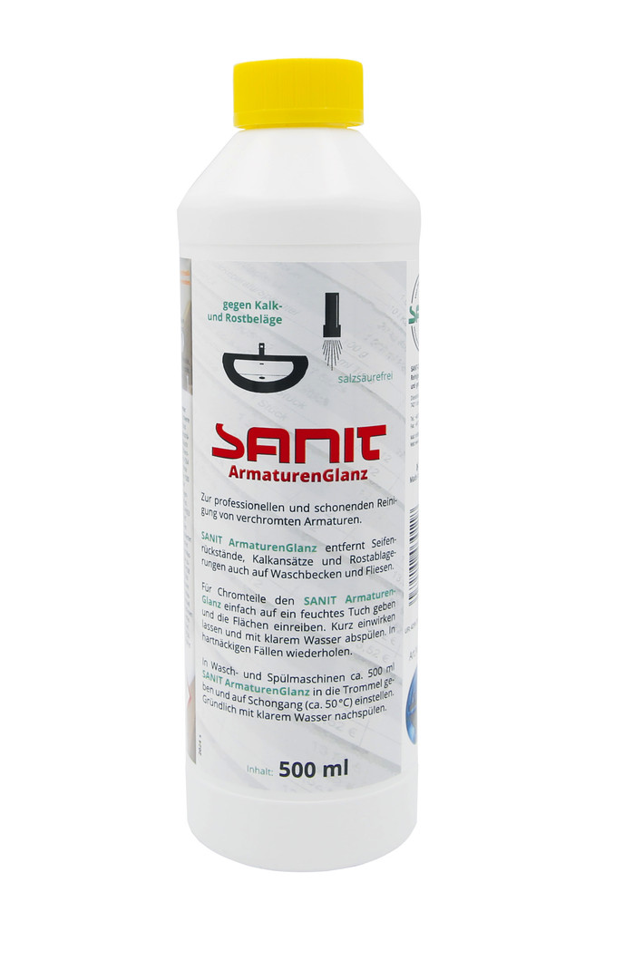 Sanit Armaturenglanz 500 ml Flasche, gegen Kalk- und Rostbeläge