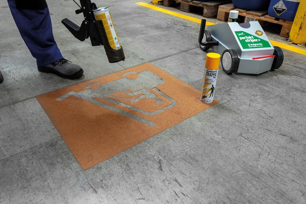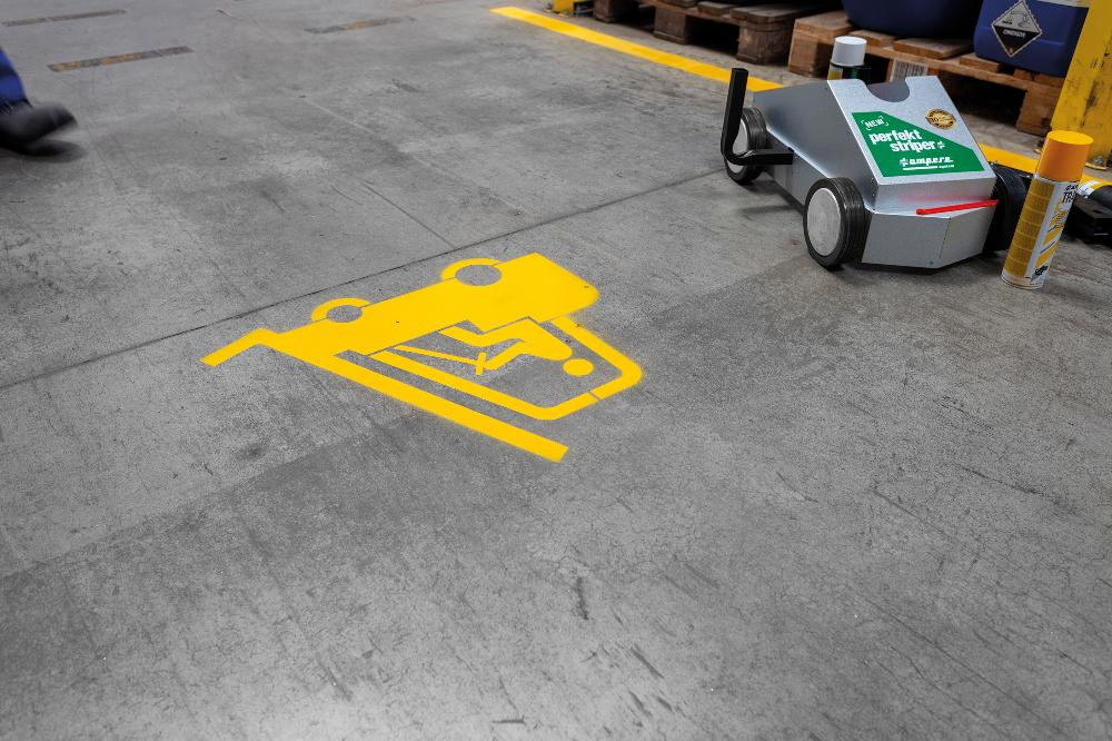 Gabelstaplerfahrer, Pfeil, Laufweg, Fußgänger, Markierungen, Sammelstelle