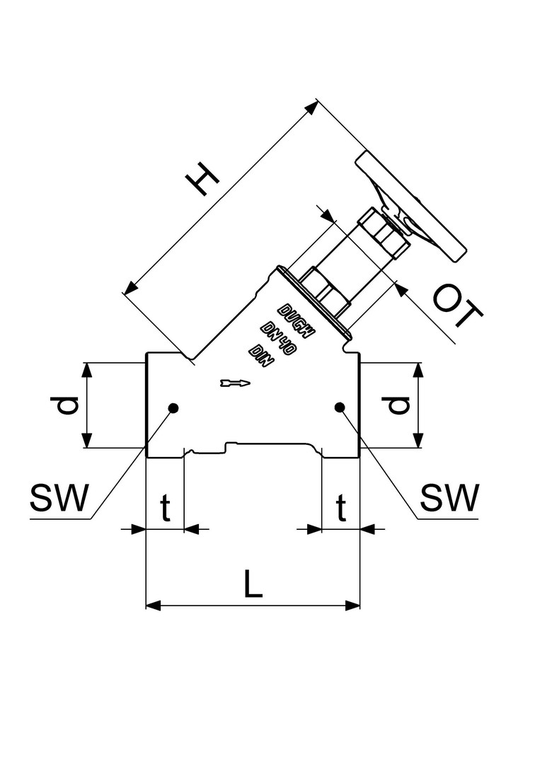 Schlösser Freistromventil 1525 DN 40, G 1 1/2, ohne Entleerung, nichtsteigende Spindel