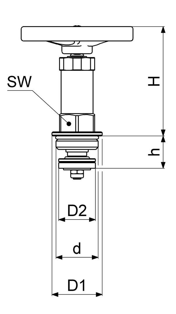 DIN 3502, für Ventilbaureihen 1525, 1530, 1570, 1575, 1571, 1576, 1572, 1577, Handrad 1859