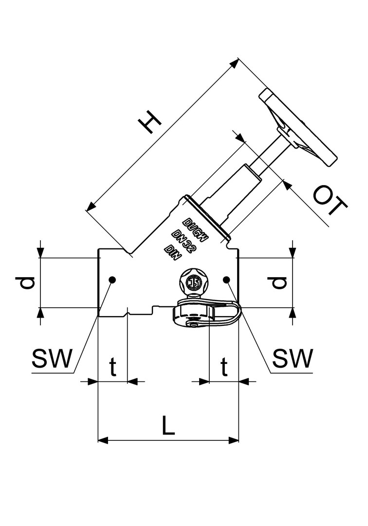 Schlösser Freistromventil PR1510 DN 32, G 1 1/4, mit Entleerung, steigende Spindel W537675