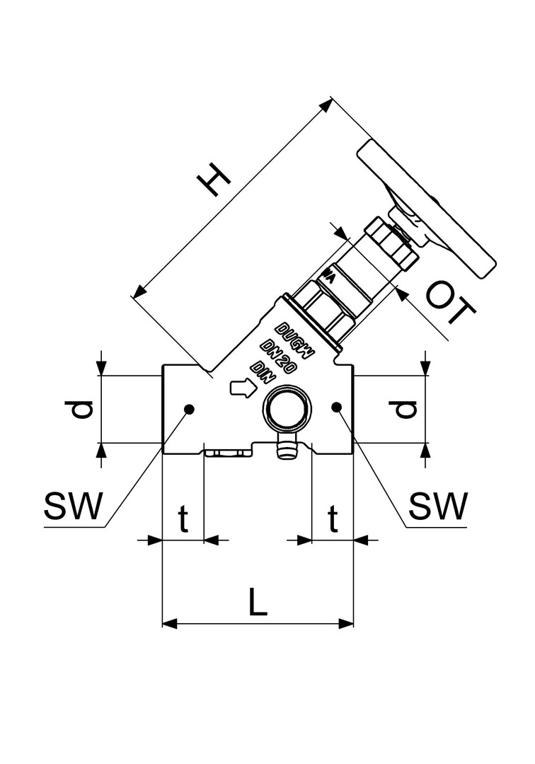 Schlösser KFR-Ventil 1630 DN 20, Rp 3/4, mit Entleerung, nichtsteigende Spindel W903628