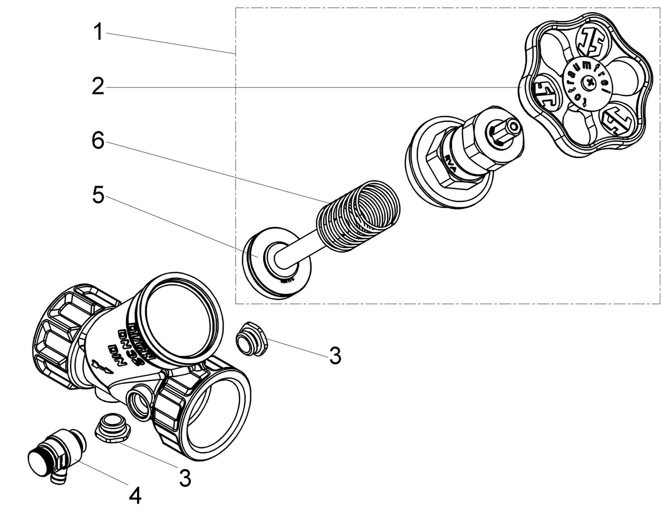 Schlösser KFR-Ventil 1630 DN 15, Rp 1/2, mit Entleerung, nichtsteigende Spindel W903627