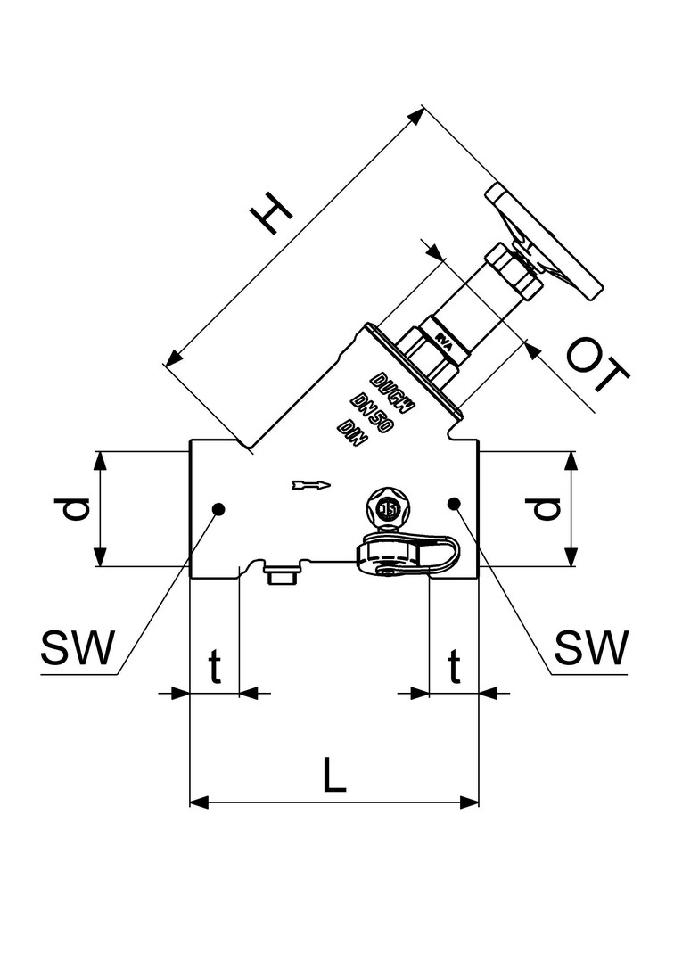 Schlösser KFR-Ventil PR1630 DN 50, G 2, mit Entleerung, nichtsteigende Spindel