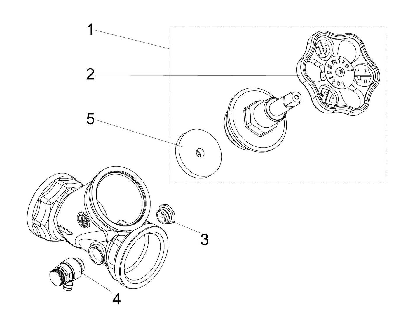 Muffenanschluss, Schallschutz (DN 10-DN 32), Entlüftungsventil 1831 1/4" (ab DN 65 3/8"), Entlüftungsstopfen 1836 1/4" (ab DN 65 3/8", Oberteil 1814, (DN 10- Oberteil 1/2")
