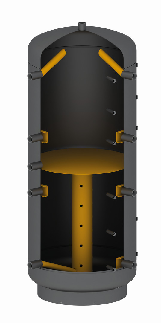 aus Stahlblech S235JR gefertigt, außen lackiert, die Speicher sind zur Speicherung von Heizungswasser geeignet, das Innenleben des Speichers: Schichtladeeinheit im Heizungsrücklauf/Schichttrennplatte/hochgezogene Rohrkrümmer zur besseren Speicherausnutzung sowie Beruhigungskammer auf den Ein- und Abgängen ermöglichen eine optimale Temperaturverteilung, Konstruktion garantiert die richtige Schichtung beim Be- und Entladen des Speichers