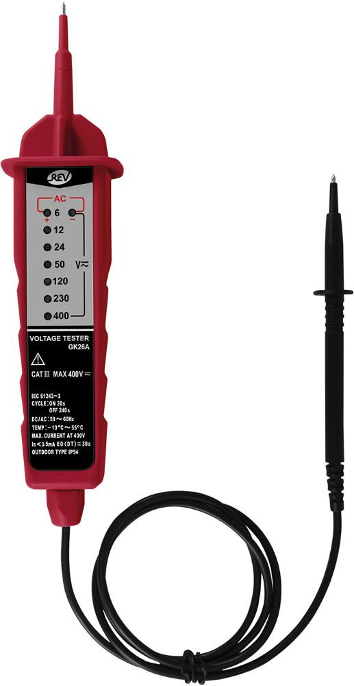 • Spannungsprüfer: 6 - 400 V; 50 - 60 Hz