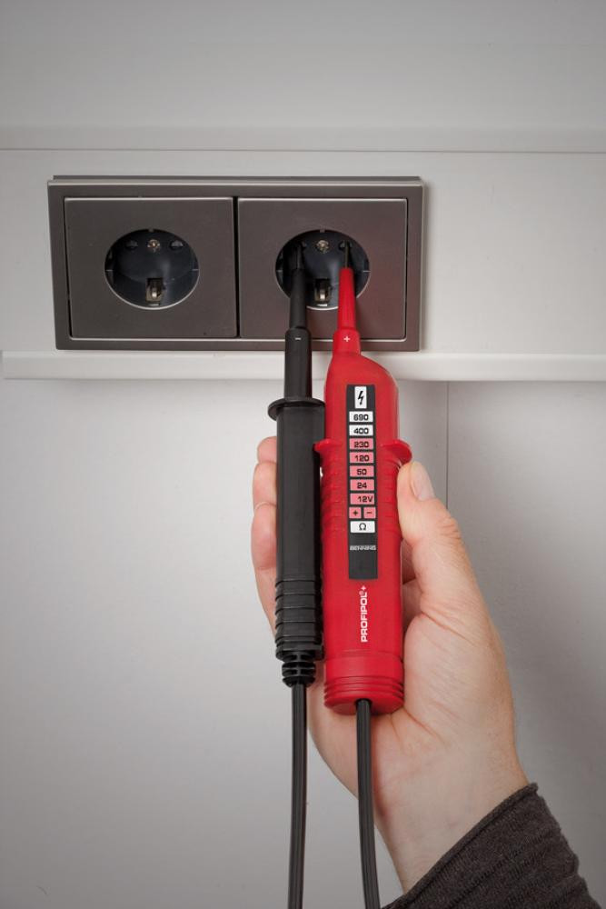 • Einpolige Außenleiterprüfung (Phase) und Polaritätsprüfung