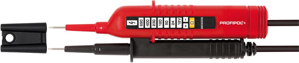 • Akustische Durchgangsprüfung über lautstarken Summer und optische Anzeige über gelbe LED