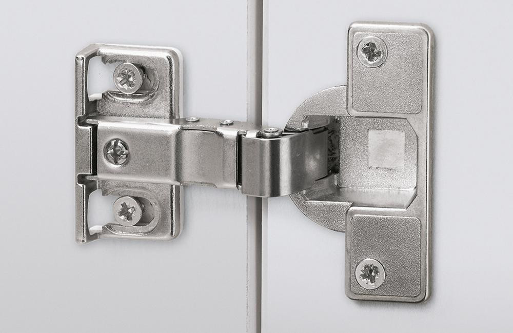 • Spezialscharnier mit geringem Scharniereinsprung für Kühlschrankumbauten