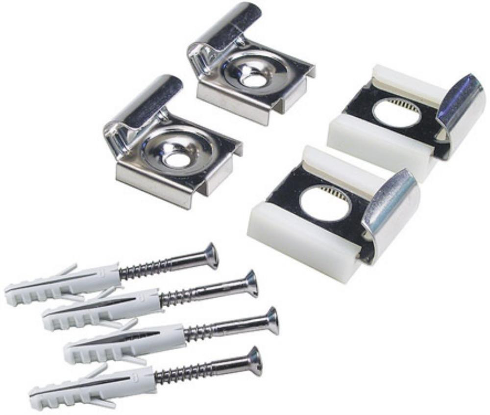 Lieferung: Satzweise 4 Halter, 2 x mit Federn, 2 x starr, mit Schrauben und Dübeln.