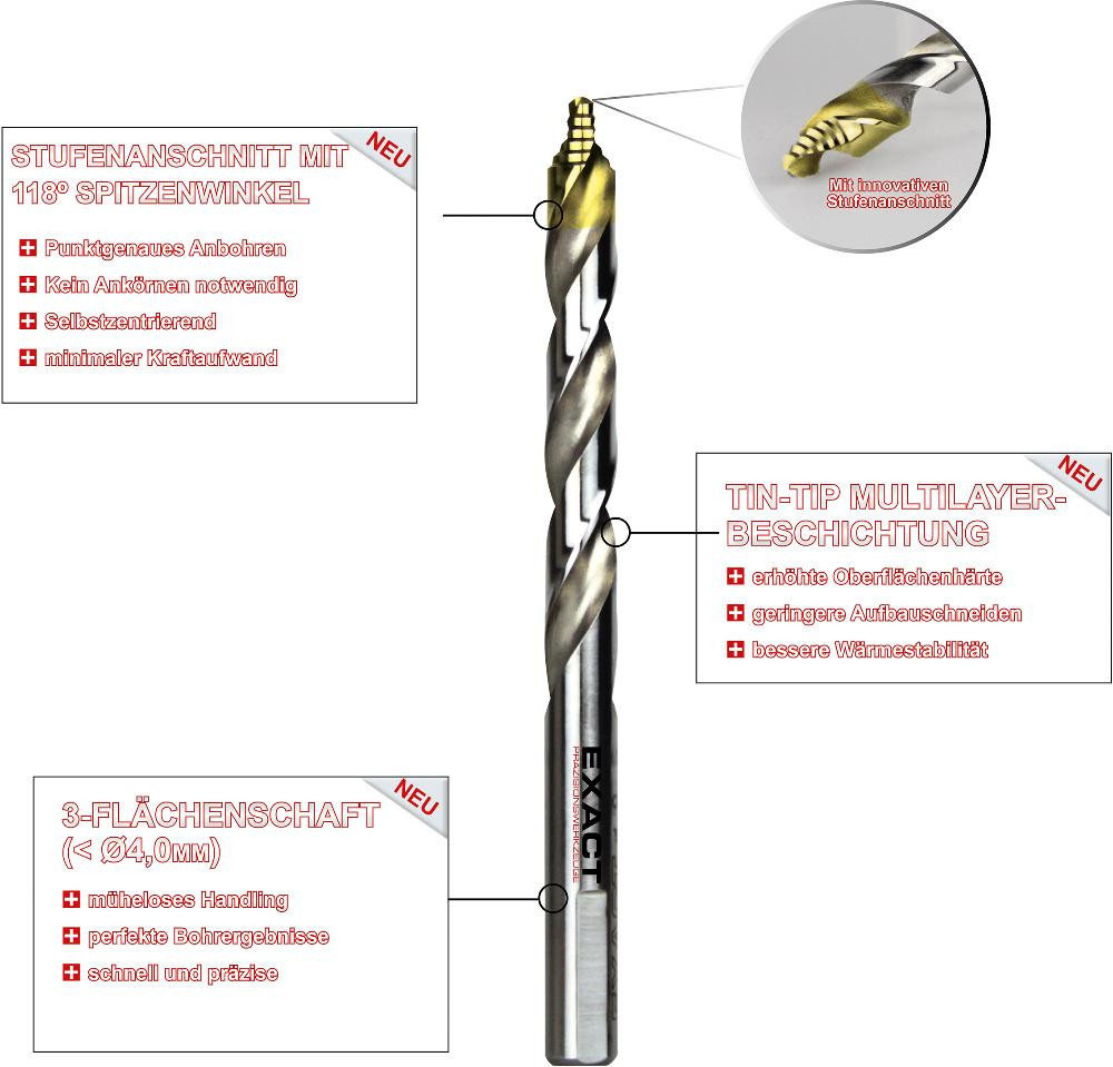 Spiralbohrersatz HSS-G STEPTECH, 19-teilig DIN338 118° Spitzenwinkel EXACT 4026558745619
