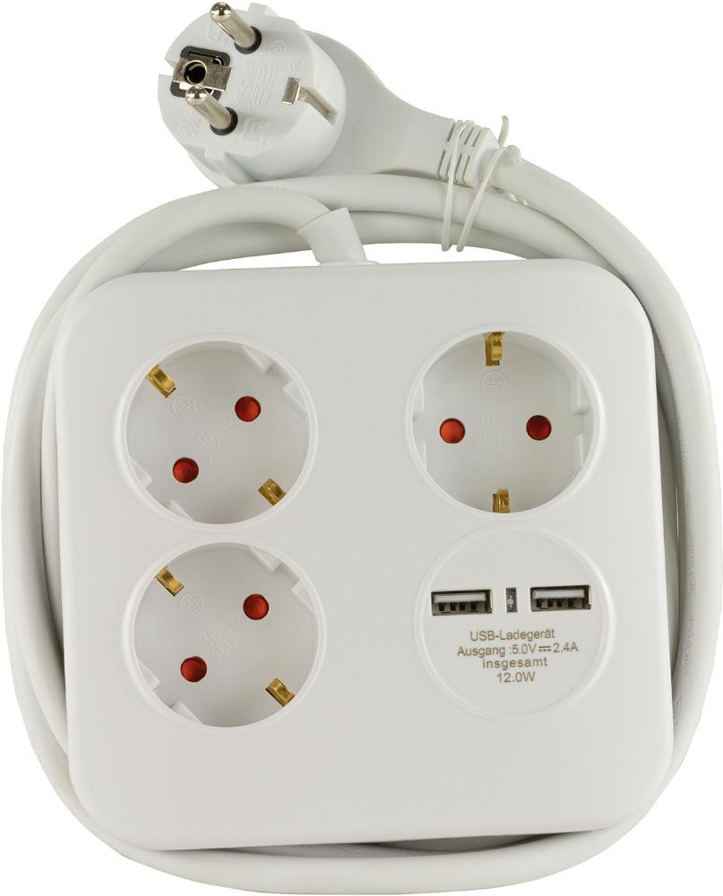 • Mit 3 Schutzkontaktsteckdosen und 2 USB-Anschlüssen