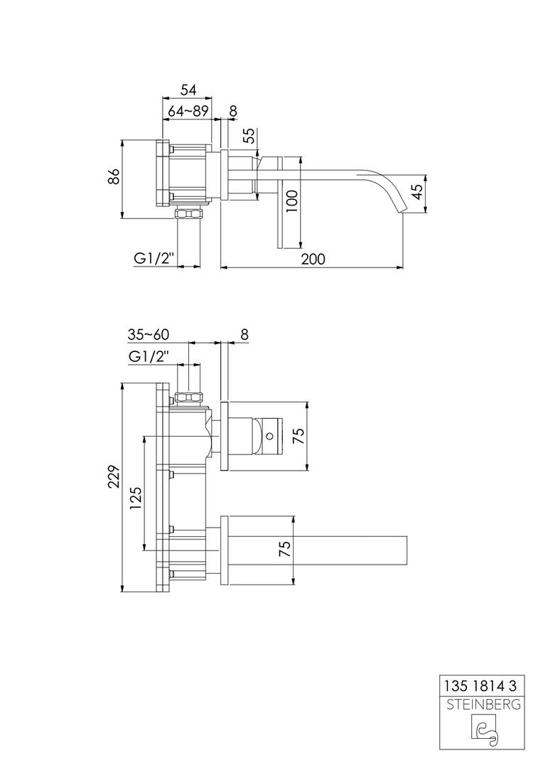 Steinberg Fertigmontageset Serie 135 Ausladung 200 mm, Matt Black, mit Keramikkartusche W323675