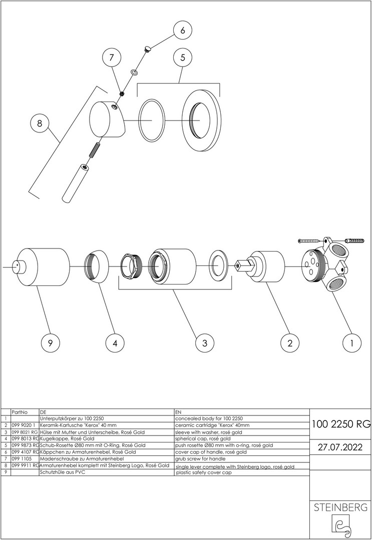 Steinberg UP-Brause-Einhebelmischer Serie 100 mit Keramikkartusche und Einbaukörper 1/2", Rose Gold