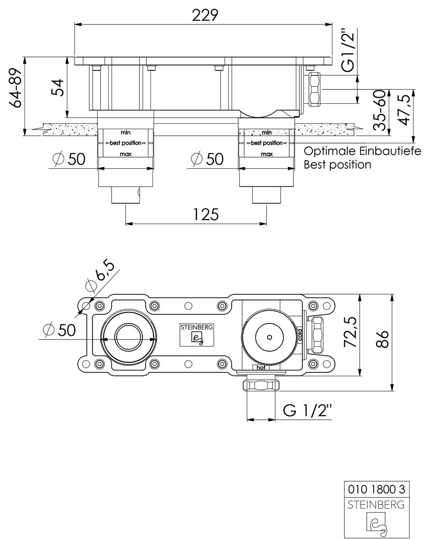 Steinberg UP-Einbaukörper 1/2", mit wasserdichtem Einbaukasten