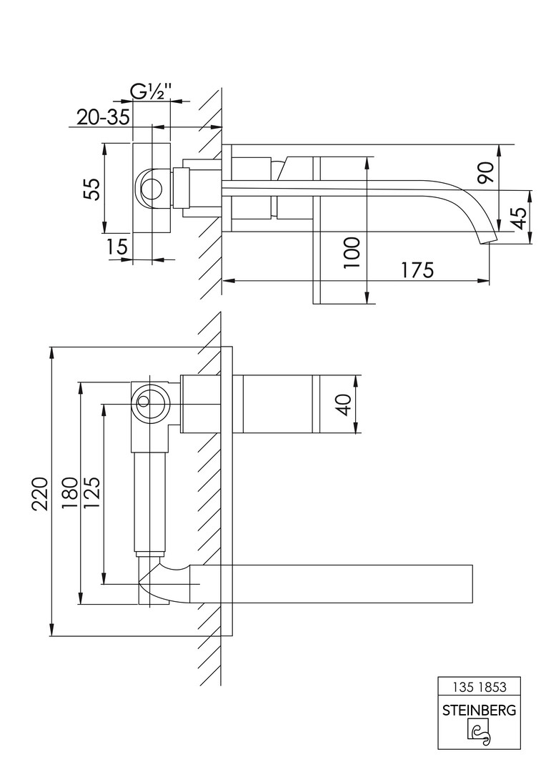 Steinberg Waschtisch-Wand-Einhebelmischer Serie 135 chrom, Ausladung 175 mm, mit Abdeckplatte und Einbaukörper