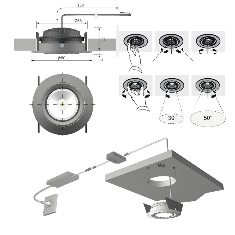• Einbau-Ø 68 mm