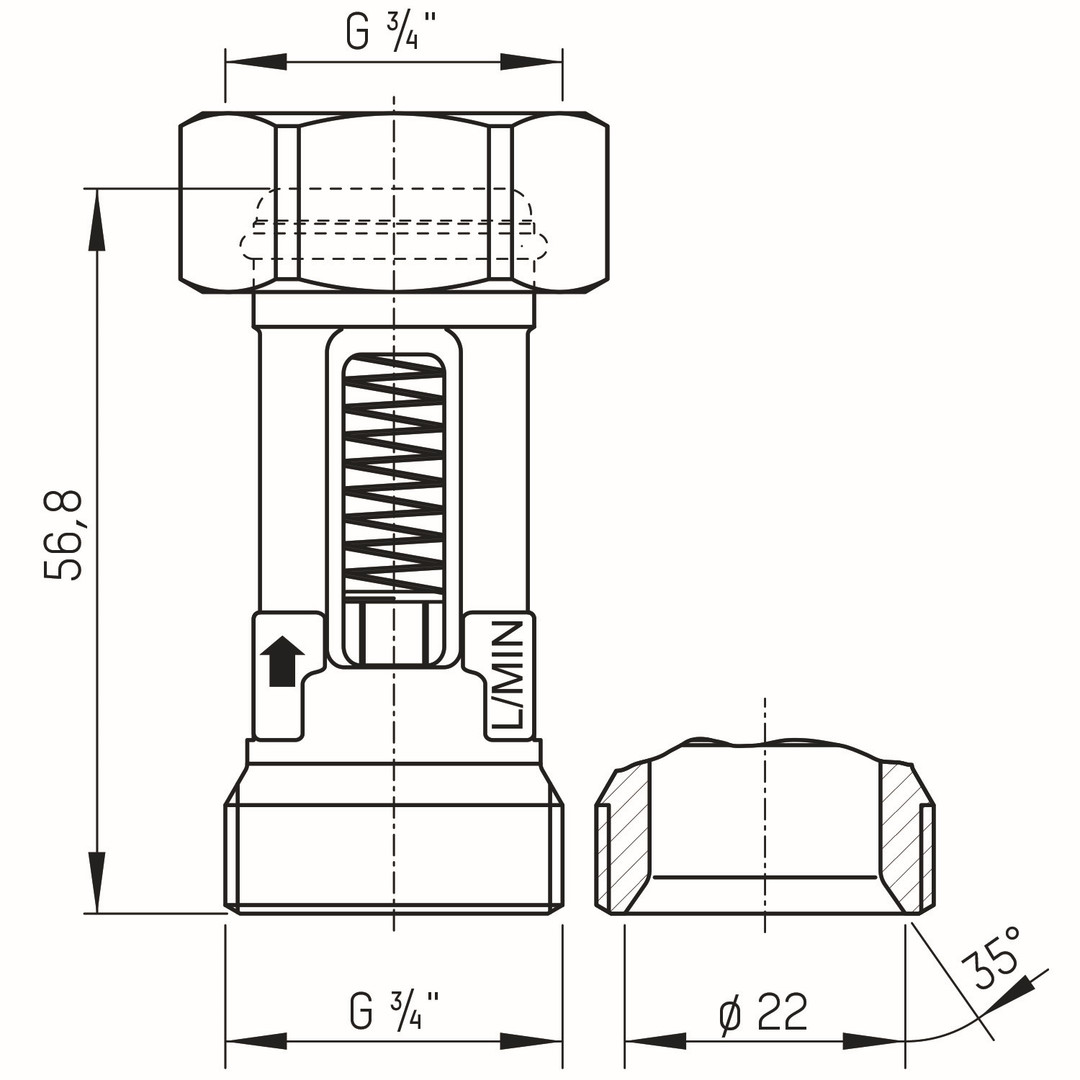 TACONOVA Durchflussmesser FLOMETER 2-8 I/min., G 3/4xR 3/4, Messing