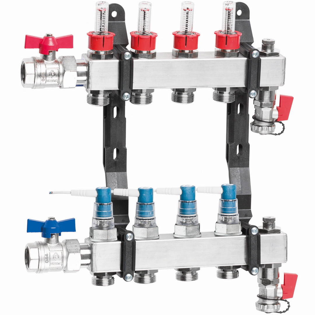 TACONOVA Fußbodenheizungsverteiler TACOSYS PRO 3/4", 1-5 l/min, 4 Heizkreise, 304 mm