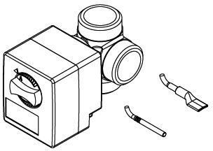 Montageset zur externen Speicherrückeinschichtung von kaskadierten Frischwarmwasserstationen, bestehend aus 3-Weg Umschaltventil mit Antriebsmotor, Tauchfühler PT 1000, Rohranlegefühler, Anschlussnennweite (DN32) AG 1 1/2"