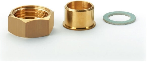 Anschlussverschraubung flachdichtend, bestehend aus Lötanschlussnippel, Überwurfmutter und solartauglicher Flachdichtung, 2 x 3 Teile/Set