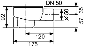 Ablauf für TECEdrainline-Duschrinne zur Montage am Rinnenkörper, Ablauf 360° drehbar, zum seitlichen Anschluss an DN 50 Abwasserleitung, mit herausnehmbarem Siphontauchrohr. Aufbauhöhe Unterkante Ablauf bis Oberkante Duschrinne= 120 mm, Sperrwasserhöhe= 50 mm gem. DIN EN 1253. Ablaufleistung nach DIN EN 1253, bei 10 mm/20 mm Aufstau über Rost: Designrost basic: 0,8 l/s, 0,9 l/s-Ablaufleistung mit Fliesenmulde plate/plate II: 0,7 l/s, 0,8 l/s