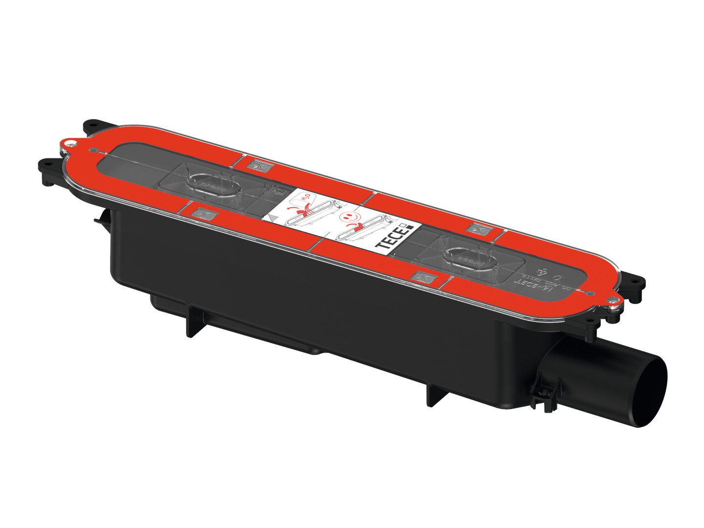 für TECE drainprofile Duschprofile, zum Einbau im Estrich, zum seitlichen Anschluss an eine Abwasserleitung, mit werkseitig befestigter und klickbarer Seal System Dichtmanschette, zur Ausführung eines DIN 18534 konformen Anschlusses an die Verbundabdichtung, min. Aufbauhöhe 95 mm (Unterkante Ablauf bis Oberkante Estrich), Ablaufleitung >=0,6/>=0,8 l/s (nach EN 1253 bei 10/20 mm Aufstau über Profildeckel), Sperrwasserhöhe 50 mm, Geruchsverschluss entnehmbar, Estrichverankerung integriert, werkseitig befestigte/klickbare und flexible Dichtmanschette mit Seal System, passend vorgefertigter Schallschutzstreifen, Bauschutzabdeckung, verschiebbare/bewegliche Dichtung zur Verbindung mit TECE drainprofile Duschprofil und zum Ausgleich von Bautoleranzen