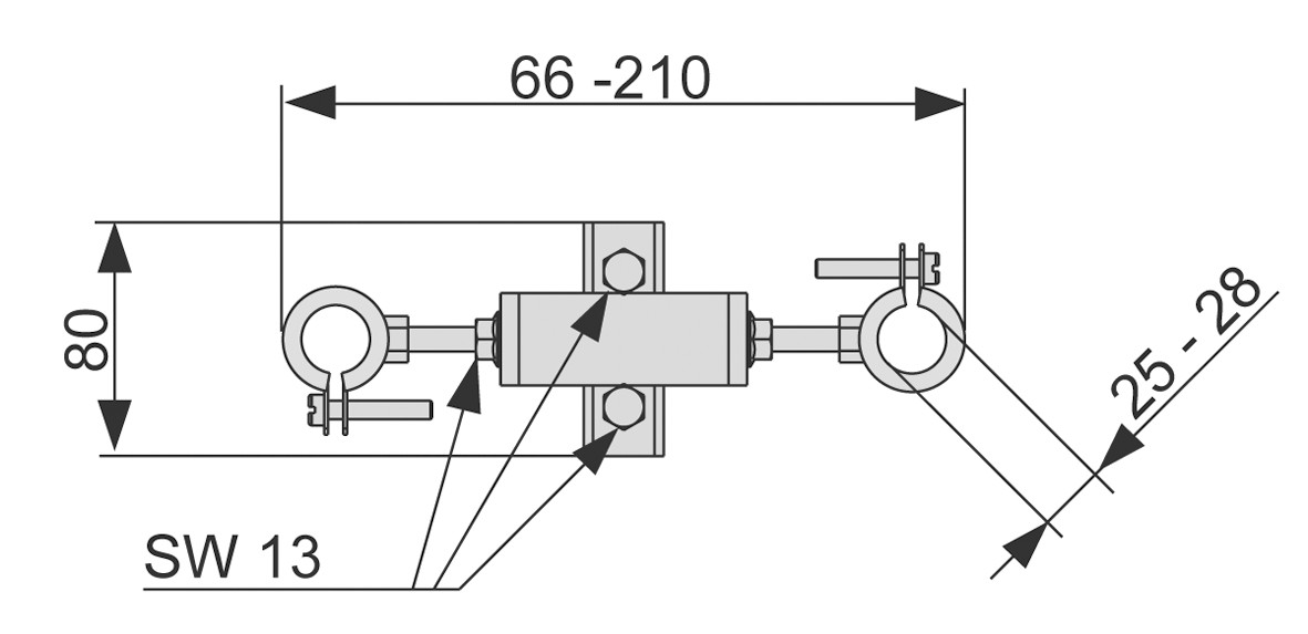 Halter zur stabilen Befestigung von handelsüblichen Absperr- und Zählereinrichtungen mittels Rohrschellen, stufenlos abstands- und höhenverstellbar, vormontierte Einheit bestehend aus: 2 Rohrschellen mit Schallschutzgummi und Befestigungsmaterial zur Befestigung an einem TECEprofil-Profilrohr