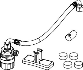 Ergänzung zum Dusch-WC, für eine vereinfachte Entkalkung, bestehend aus: Entkalkungsgehäuse aus Messing, Entkalkungsstopfen mit Aufnahme für Entkalkungstab mit Drehhilfe, Entkalkungstabs (4 Stück), Panzerschläuche, Entkalkungskappe für Duschstab