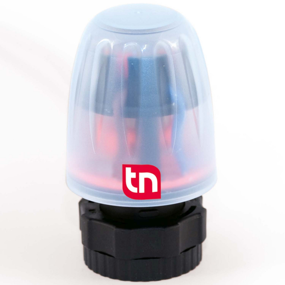 elektrothermischer Stellantrieb, Funktion NC (stromlos geschlossen), Heimeier/Oventrop auch für TacoSys, Strawa, Empur Messing, Delphistherm, Emmeti, Schlosser, AC-FIX, Stramax und Roth, MNG auch für Cazzaniga, SBK, Empur-Edelstahl und SKV-Ventil frontal