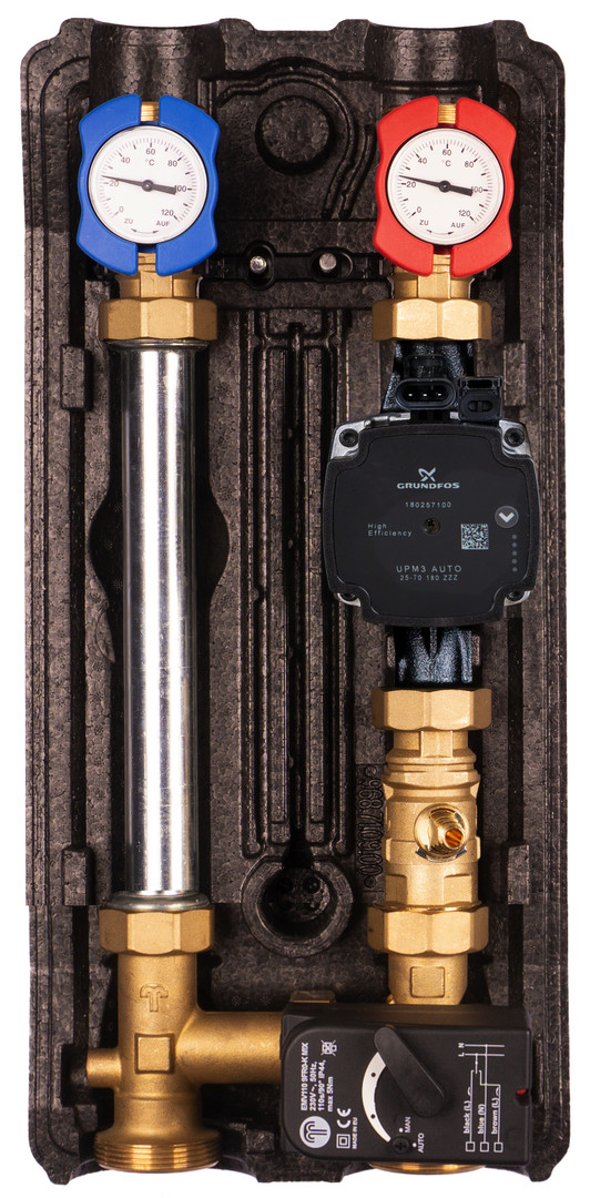 Tuxhorn Pumpengruppe tubra PGM lang Grundfos UPM3 25-70 Hybrid, mit Dreiwegemischer, Vorlauf rechts