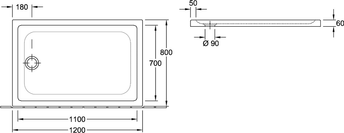 V&B Duschwanne O.NOVO 120 x 80 x 6 cm, weiß W217683