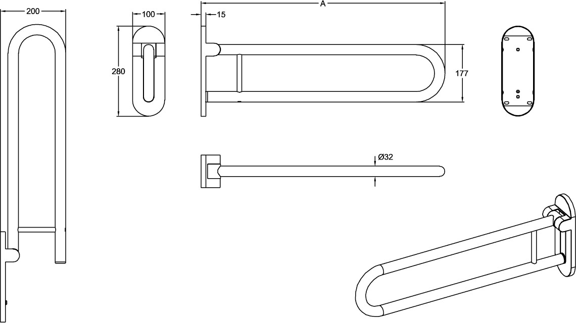 aus Aluminium mit Pulverbeschichtung, komplett mit Standardbefestigungsmaterial, maximale Belastbarkeit laut TÜV 130 kg, erfüllt die Anforderungen nach ÖNORM B1600/1601, DIN 18040 und SIA 500