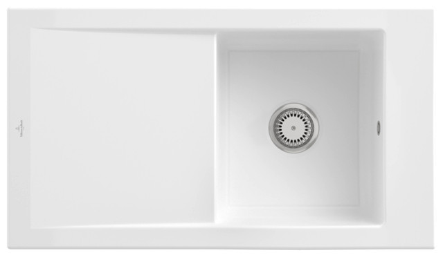 V&B Spüle Timeline 50 mit Ablaufgarnitur, Handbetätigung, weiß alpin CeramicPlus