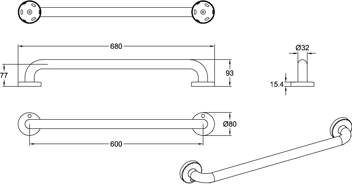 aus Aluminium mit Pulverbeschichtung, kann vertikal sowie horizontal angebracht werden, mit Standardbefestigungsmaterial, Rohrdurchmesser 32 mm, maximale Belastbarkeit laut TÜV 120 kg