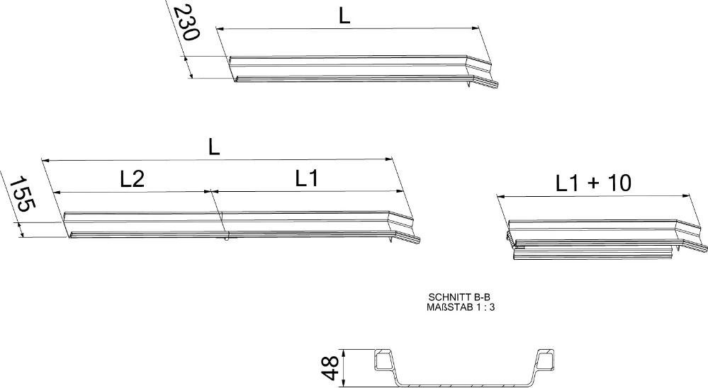 Verladeschiene Aluminium L3000xFB150 mm mit Rand Tragkraft 300 kg/Paar 4045012002471