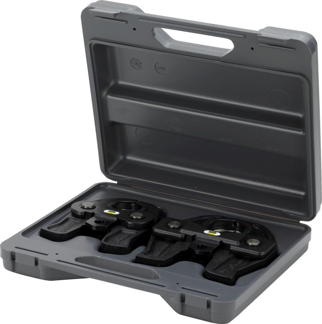 empfohlen für Pressgun 6 Plus, Pressgun 6, Pressgun 6B, Pressgun 5, Pressgun 4B und 4E, Pressmaschinen PT3-H/EH, PT3-AH und Typ 2 (PT2), Akku-Pressmaschinen des Herstellers Holger Clasen, Geberit/Mepla-Pressmaschinen Typ PWH 75, Typ N 230 V und Typ N Akku, Geberit/Mapress-Pressmaschinen Typ EFPII, ACO 1, ECO 1, ACO 201, ECO 201, AFP 201, EFP 201, ACO 202 und ECO 202, Ridgid-Pressmaschinen RP 10-S, RP 10-B, RP 330C/330B, RP 340, mit Systemkoffer, Koffereinsatz Pressringe, Deckeleinlage, Pressbacke PT2