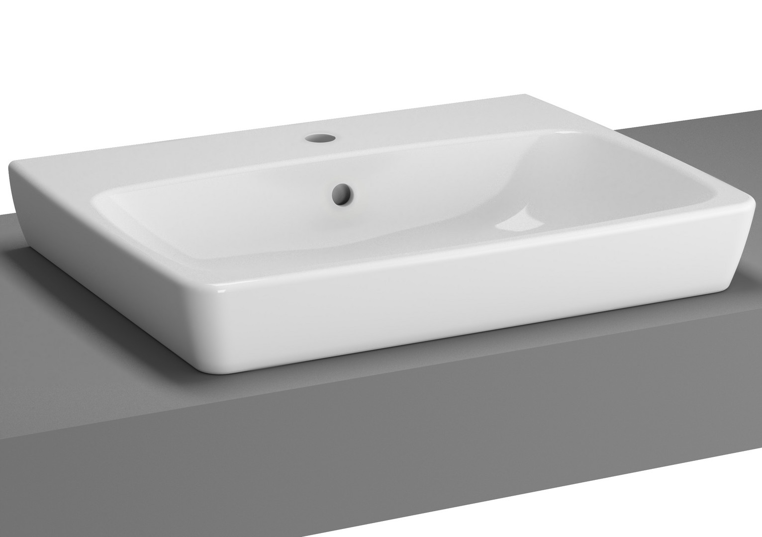 VitrA Bad Aufsatz-Waschtisch Metropole 60 x 46 cm, weiß hochglanz, geschliffen, mit Überlauf, 1 Hahnloch mittig