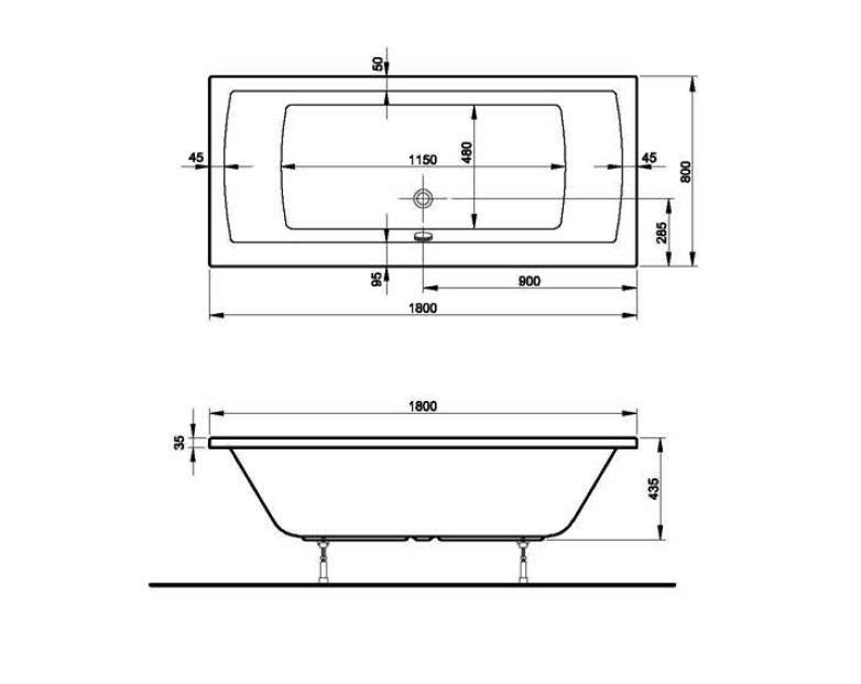 Höhe 435 mm, Sanitäracryl 5 mm, Rückenschräge beidseitig, Inhalt 208 l, Wassertiefe 320 mm (Ablauf bis Unterkante Überlauf), ohne Hahnlöcher, Ab-/Überlaufgarnitur ist nicht im Lieferumfang enthalten, ohne Schürze