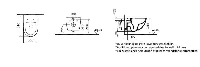 VitrA Bad Wand-Tiefspül-WC Sento Flush 2.0 36,5x54cm, 3/6 l, ohne Spülrand, weiß VC W58544