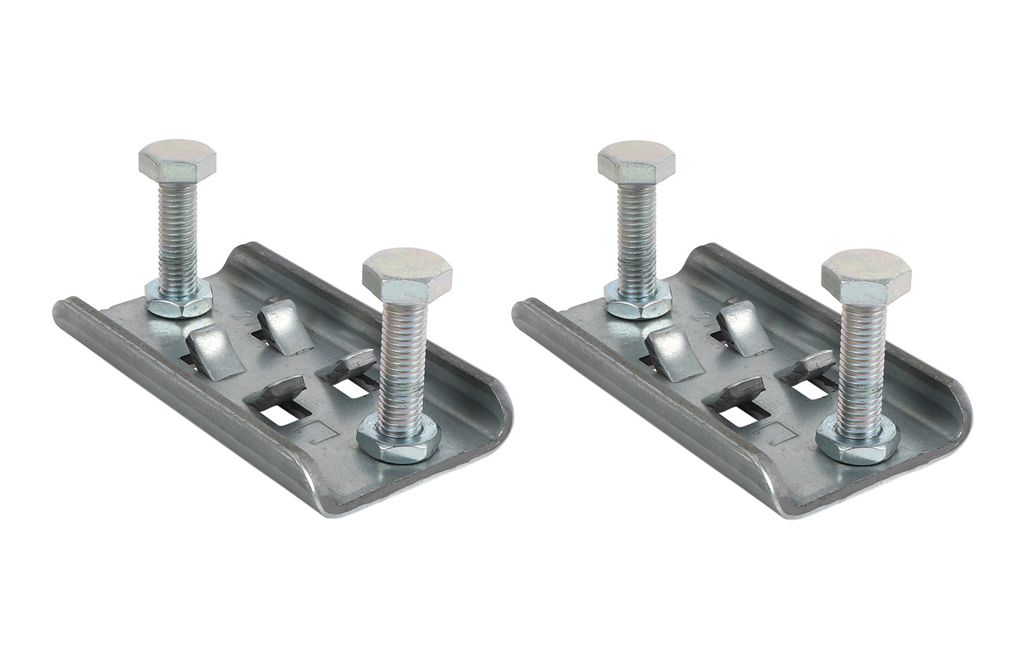 für Befestigung an Stahlträgern, Set mit zwei Klemmplatten, verwendbar in Verbindung mit Strut-Montageschienen, zur Klemminstallation zwischen Flanschen von I- oder U-Stahlträgern, ohne Schweißen oder Bohren, Material Klemmplatte aus Stahl 1.0242 (S250GD), Sechskantkopfschrauben M10x40: Stahlklasse 8.8 (EN-ISO 898-1), Sechskantmuttern M10 DIN 439-B: Stahlklasse 04 (EM-ISO 898-2), Oberflächenbeschichtung: Klemmplatte ZM310-MAC (sendzimirverzinkt), Verschlussteile verzinkt ISO 2081-Fe/Zn5/A (EN ISO 2081:2008)