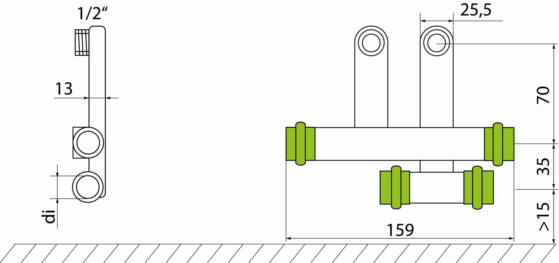 2-teilig, Messing, ohne Ausstemmen der Wand, links/rechts und mittig verwendbar, für Presssystem Kontur V, geeignet für AWA-E, AWA, PBV und PBV-L