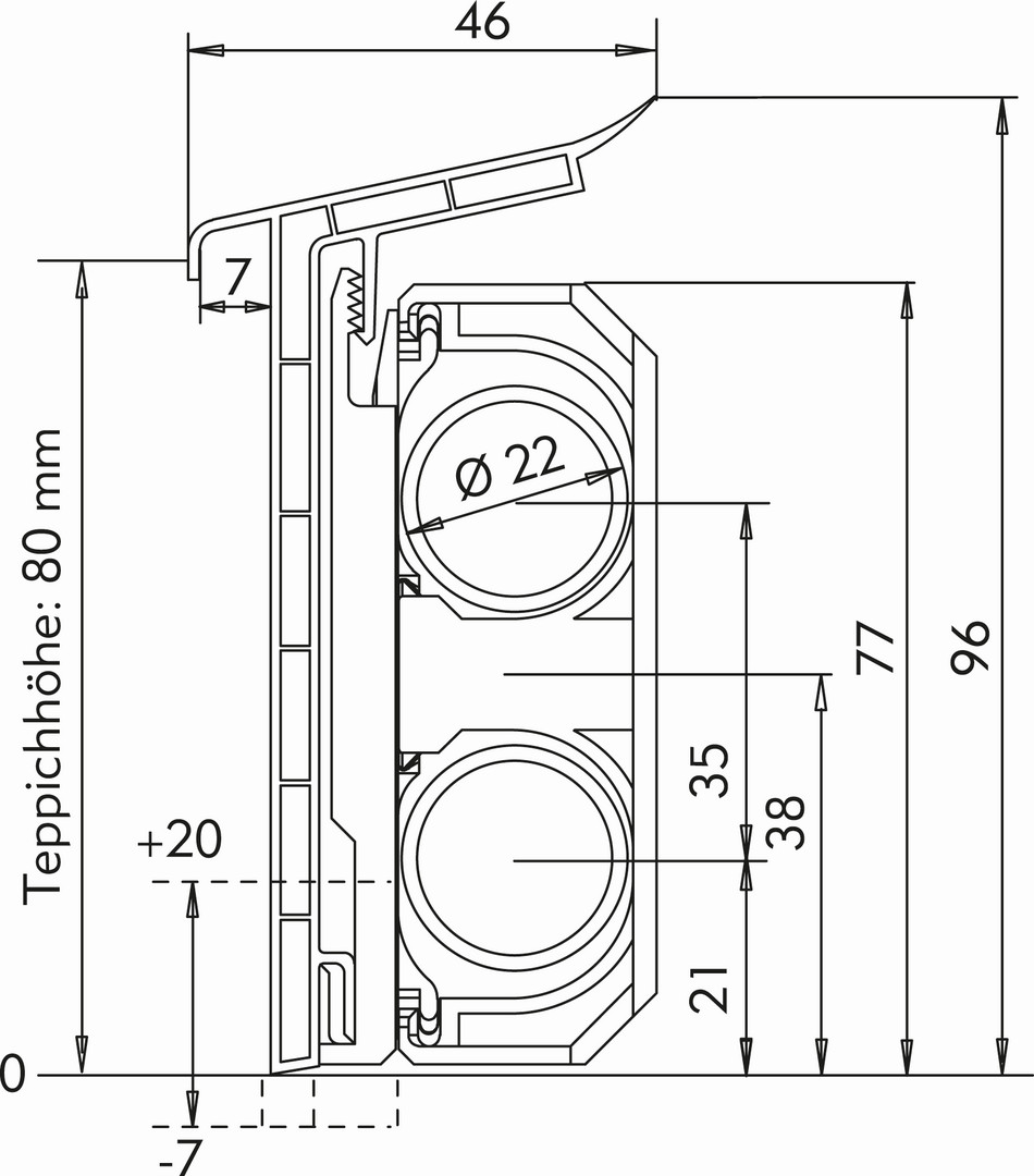Weitzel Sockelleiste SLT Länge 2 m, weiß, für Teppicheinsatz