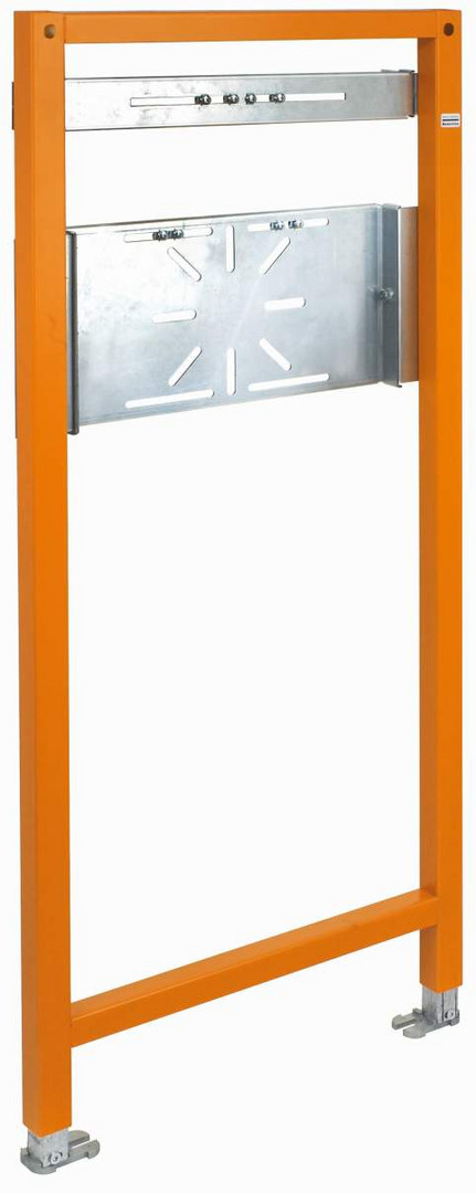 als Vorwandinstallation für den Einbau vor Massiv-/Leichtbauwände, als Inwandinstallation für den Einbau in Leichtbau oder Holzständerwänden und in UW-Profile, bestehend aus pulverbeschichteter Rahmenkonstruktion mit Bodenbefestigung, Rahmenbreite 500 mm, 330 mm höhenverstellbar für Fußbodenaufbau RFB-FFB, Armaturenblech zur Aufnahme von UP-Armaturen, Armaturenblech verschiebbar, max. Einbautiefe für Rohbaukörper 100 mm, ohne Wandhalter, TÜV geprüft