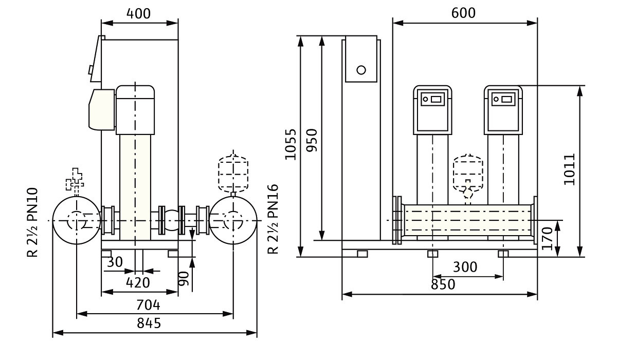 Anschlussfertige Wasserversorgungsanlage mit 2-4 parallel geschalteten, vertikal angeordneten, Edelstahl-Hochdruck-Kreiselpumpen, normalsaugend, der Baureihe Helix VE, mit integriertem luftgekühlten Frequenzumrichter, mit Smart Controller, zum Einsatz für vollautomatische Wasserversorgung und Druckerhöhung im Zulaufbetrieb aus dem öffentlichen Wassernetz oder einem Tank für private, kommerzielle, industrielle und kommunale Anwendungen (z. B. Wohngebäude, Büro, Verwaltungsgebäude, Hotels, Krankenhäuser, Handwerk, Industrie, Wasserversorgungsunternehmen), Reservepumpe gemäß DIN 1988 und DIN EN 806 enthalten, zugelassene Fördermedien sind normalerweise Wasser, die die verwendeten Werkstoffe nicht angreifen (weder chemisch noch mechanisch) und keine abrasiven oder langfaserigen Bestandteile aufweisen wie Trinkwasser, Kühlwasser, Prozesswasser, Löschwasser (außer für Feuerlöschanlagen gemäß DIN 14462 und mit Genehmigung der örtlichen Brandschutzbehörden), mit Einbau- und Betriebsanleitung, integrierter Überlastschutz, Trockenlaufschutz und Wassermangelsicherung, mit automatischer Abschaltung