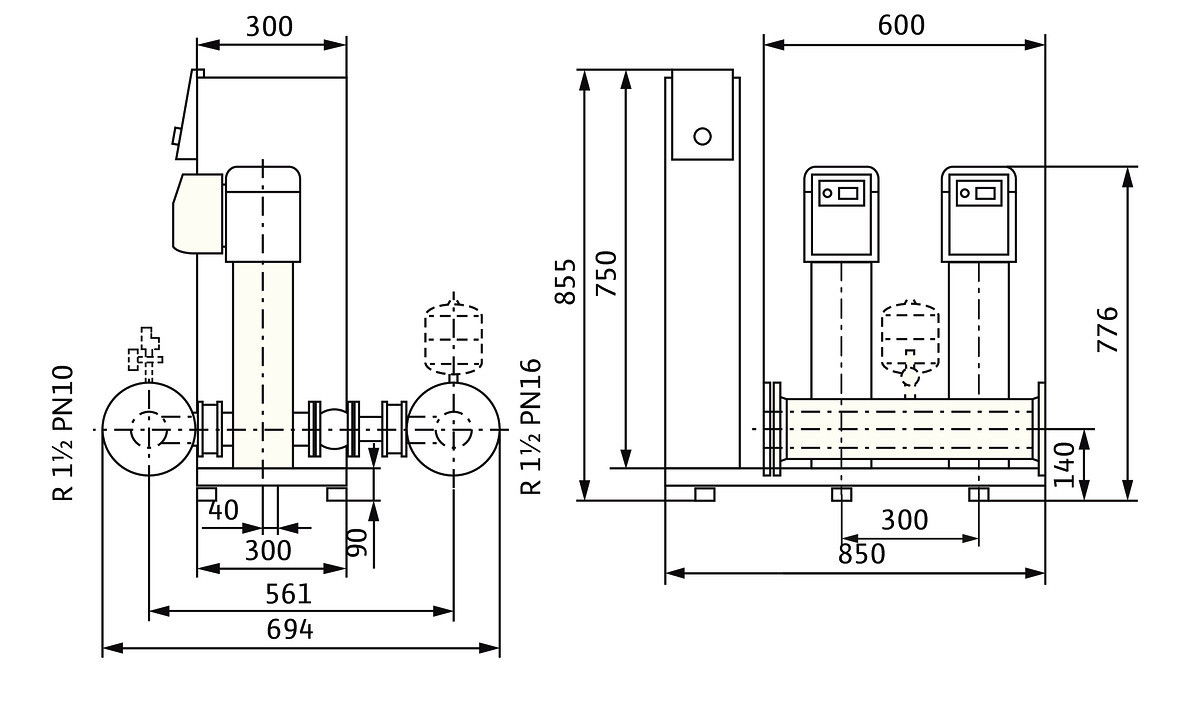 Anschlussfertige Wasserversorgungsanlage mit 2-4 parallel geschalteten, vertikal angeordneten, Edelstahl-Hochdruck-Kreiselpumpen, normalsaugend, der Baureihe Helix VE, mit integriertem luftgekühlten Frequenzumrichter, mit Smart Controller, zum Einsatz für vollautomatische Wasserversorgung und Druckerhöhung im Zulaufbetrieb aus dem öffentlichen Wassernetz oder einem Tank für private, kommerzielle, industrielle und kommunale Anwendungen (z. B. Wohngebäude, Büro, Verwaltungsgebäude, Hotels, Krankenhäuser, Handwerk, Industrie, Wasserversorgungsunternehmen), Reservepumpe gemäß DIN 1988 und DIN EN 806 enthalten, zugelassene Fördermedien sind normalerweise Wasser, die die verwendeten Werkstoffe nicht angreifen (weder chemisch noch mechanisch) und keine abrasiven oder langfaserigen Bestandteile aufweisen wie Trinkwasser, Kühlwasser, Prozesswasser, Löschwasser (außer für Feuerlöschanlagen gemäß DIN 14462 und mit Genehmigung der örtlichen Brandschutzbehörden), mit Einbau- und Betriebsanleitung, integrierter Überlastschutz, Trockenlaufschutz und Wassermangelsicherung, mit automatischer Abschaltung