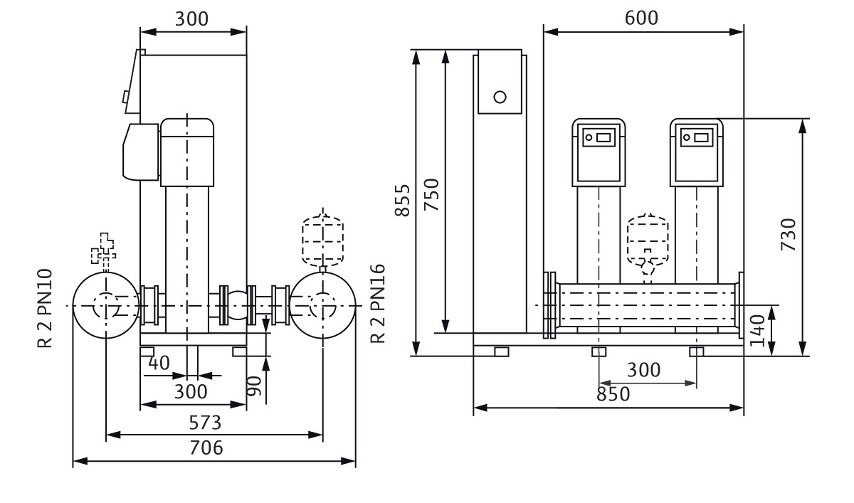 Wilo Mehrpumpenanlage SiBoost2.0 Smart 2HELIX VE602, R2 (PN 10), R2 (PN 16), 0.75kW, 0.94kW W579735